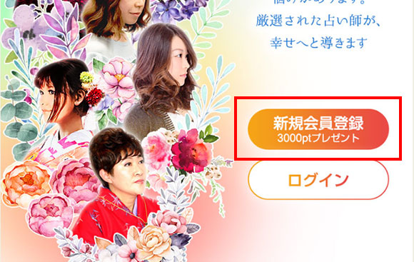 カミールサイトトップにある新規会員登録ボタンより、無料会員登録&鑑定で使えるポイント3,000円分が獲得できます。